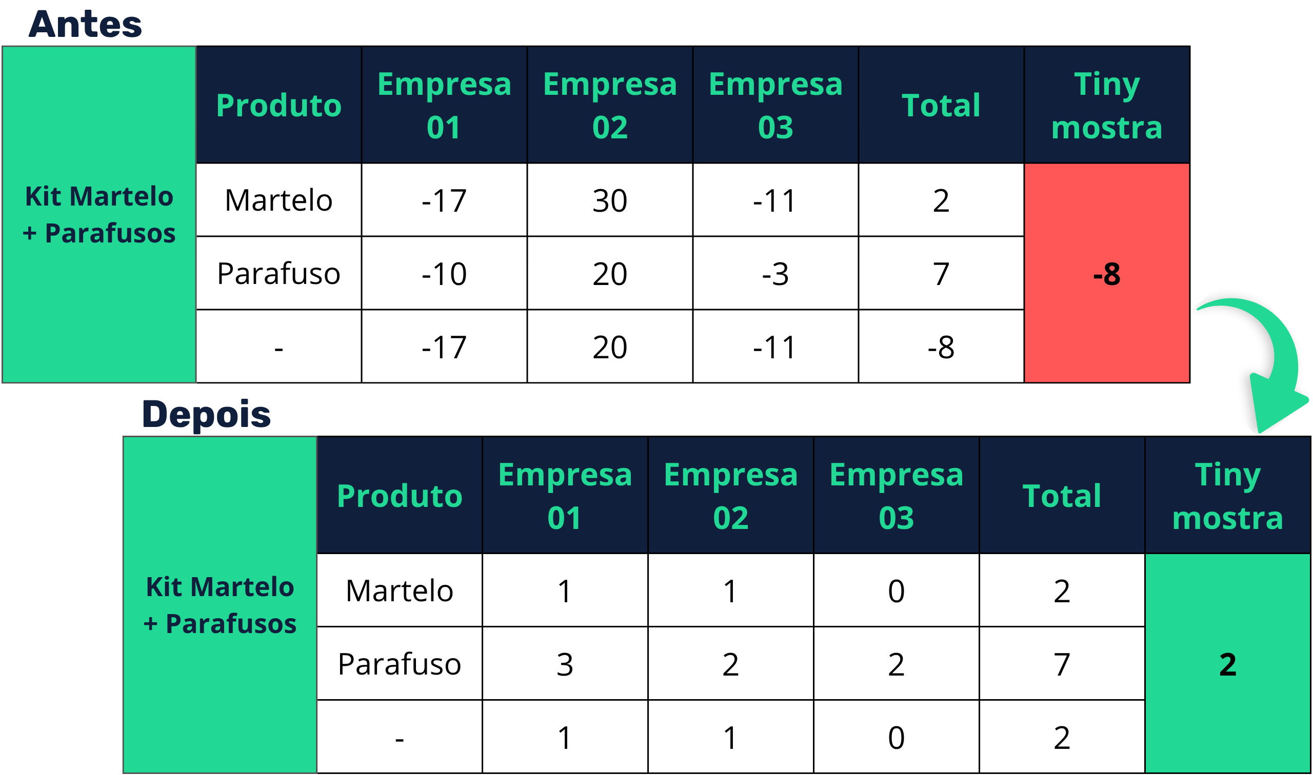 Antes o Tiny mostrava -8 no Kit,